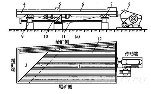 搖床選礦是在一個傾斜的床面上借助機械石板對稱往復運動和薄層斜面水流等聯合作用,使礦粒在床面上松散分層,分帶,從而使礦物按密度不同來進行分選的過程。