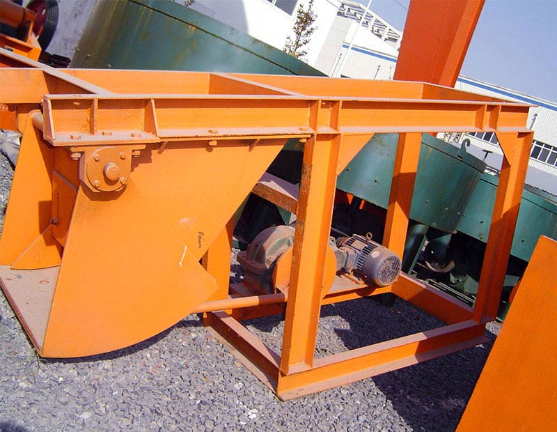 當電動機啟動后,其動力通過三角帶,傳遞到減速器減速。經減速的動力傳遞到可調偏心距的偏心輪(給礦量的大小則要調節偏心輪的位置)再由偏心輪通過連桿,驅使擺底板作往復弧形擺動,從而使給料口周而復始的開啟閉合,位于給料機上方礦倉的礦石,通過給料機機體內腔由給料口,一次次勻速的排出機外,確保球磨機均勻地給料生產。