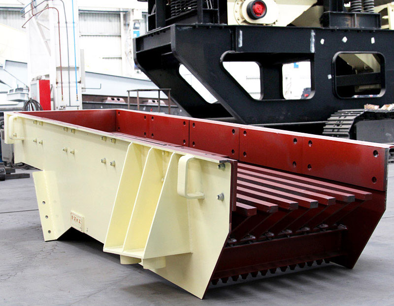振動給料機是一種可以把塊狀、顆粒狀的物料從儲料倉中均勻、定量、連續(xù)送入受料裝置的一種設(shè)備。振動給料機在砂石生產(chǎn)線中可以為破碎機連續(xù)均勻的喂料,并對物料進(jìn)行粗篩分,具有結(jié)構(gòu)簡單,操作、潤滑方便,耗電量小的特點,可以均勻地調(diào)節(jié)給礦量,現(xiàn)如今在礦山行業(yè)已得到廣泛應(yīng)用。