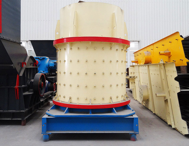 物料由機器上部垂直落入高速旋轉的葉輪內,在高速離心力的作用下,與另一部分以傘狀形式分流在葉輪四周的物料產生高速撞擊與粉碎,物料在互相撞擊后,又會在葉輪和機殼之間以物料形成渦流多次的互相撞擊、摩擦而粉碎,從下部直通排出,形成閉路多次循環,由篩分設備控制達到所要求的成品粒度。