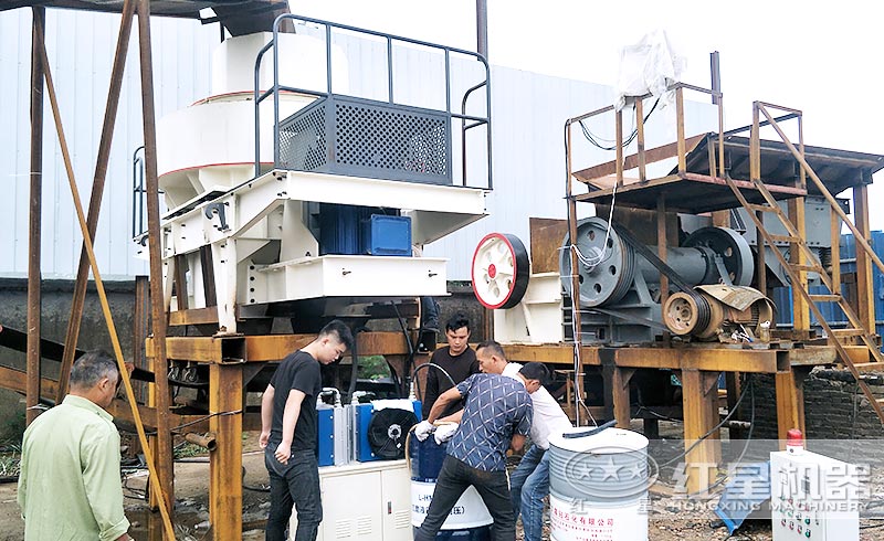 設備配置:顎破+制砂機+振動篩+輸送機
