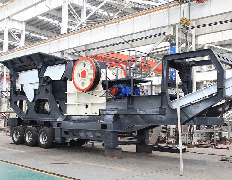 輪胎式車載移動打石機所有部件完全機載,包括:牢固的機架、破碎機、給料機、振動篩、傳送帶、電動機和控制箱等。