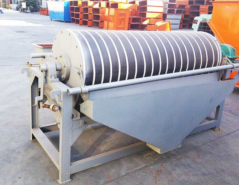 細(xì)粉磁選機(jī)在工作時,筒體開始運轉(zhuǎn)時,礦漿經(jīng)給礦箱流入槽體后,在給礦噴水管的水流作用下,礦粒呈松散狀態(tài)進(jìn)入槽體的給礦區(qū),磁性礦粒因磁聚而形成“磁團(tuán)”或“磁鏈”,并在磁力的作用下向磁極運動,夾雜在“磁團(tuán)”或“磁鏈”中的脈石等非磁性礦物在翻動中脫落下來,為尾礦,留在圓筒表面的“磁團(tuán)”或“磁蓮”即是精礦,進(jìn)而將細(xì)粉精礦和其他雜物分離開來。