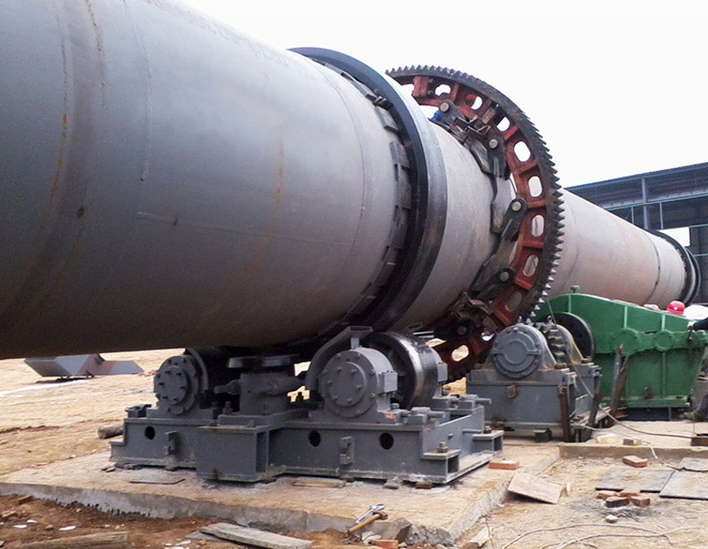 回轉窯簡體呈3%~3.5%的斜度安裝,并以1~2r/min慢速旋轉,自窯尾端加入的物料沿窯體以翻滾及滑動的方式朝窯頭出料端移動,最后從出料端卸出。